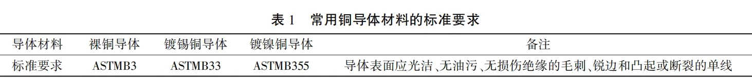 但是大部分企業(yè)仍然把銅作為導體層的主要材料,首先銅的電阻率較低,其次銅大部分性能都優(yōu)于同級別的鋁,如載流量大、電壓損失低、能耗低和可靠性強等。目前導體選材一般采用國標6類軟導體(單根銅絲伸長率必須大于25%,單絲直徑小于0.30)去保證銅單絲柔軟性、韌性強。表1列出了常用的銅導體材料所需要滿足的標準。